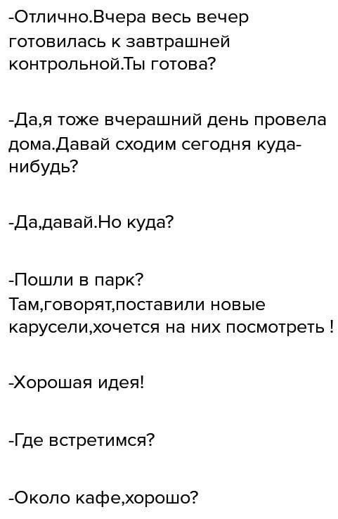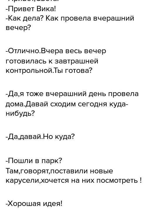 Напишите пожалуйста диалог (не интервью , а чтобы отвечал один человек потом второй) по 10 реплик на каждого (всего 20 реплик не считая приветствия)