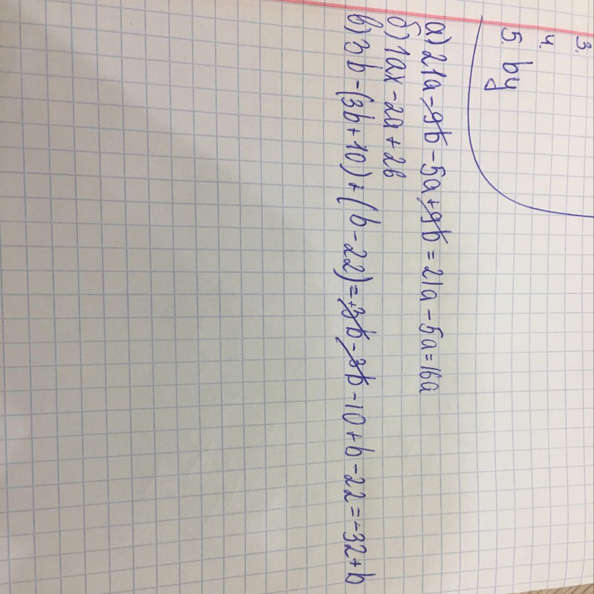 - 3b - (3b + 10) + (b - 22) = 3b - 3b - 10 + b - 22 = b - 32