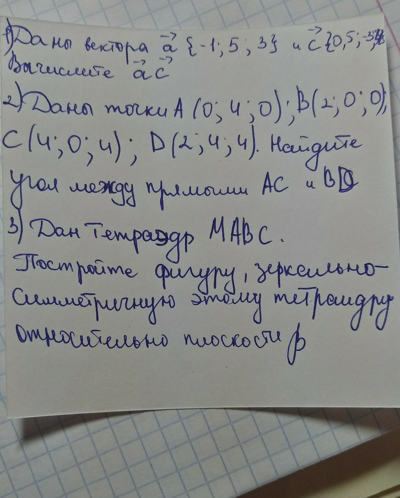 2) AC(4;-4;4), BD(0;4;4), потом учебник стр 106 по формуле находим cosA