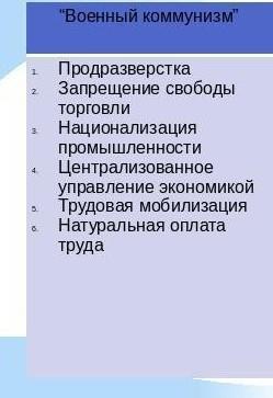Сравните политику «военного коммунизма» и НЭП по Следующим критериям: производства; товарно-денежные отношения; характер труда; распределение; основные результаты;