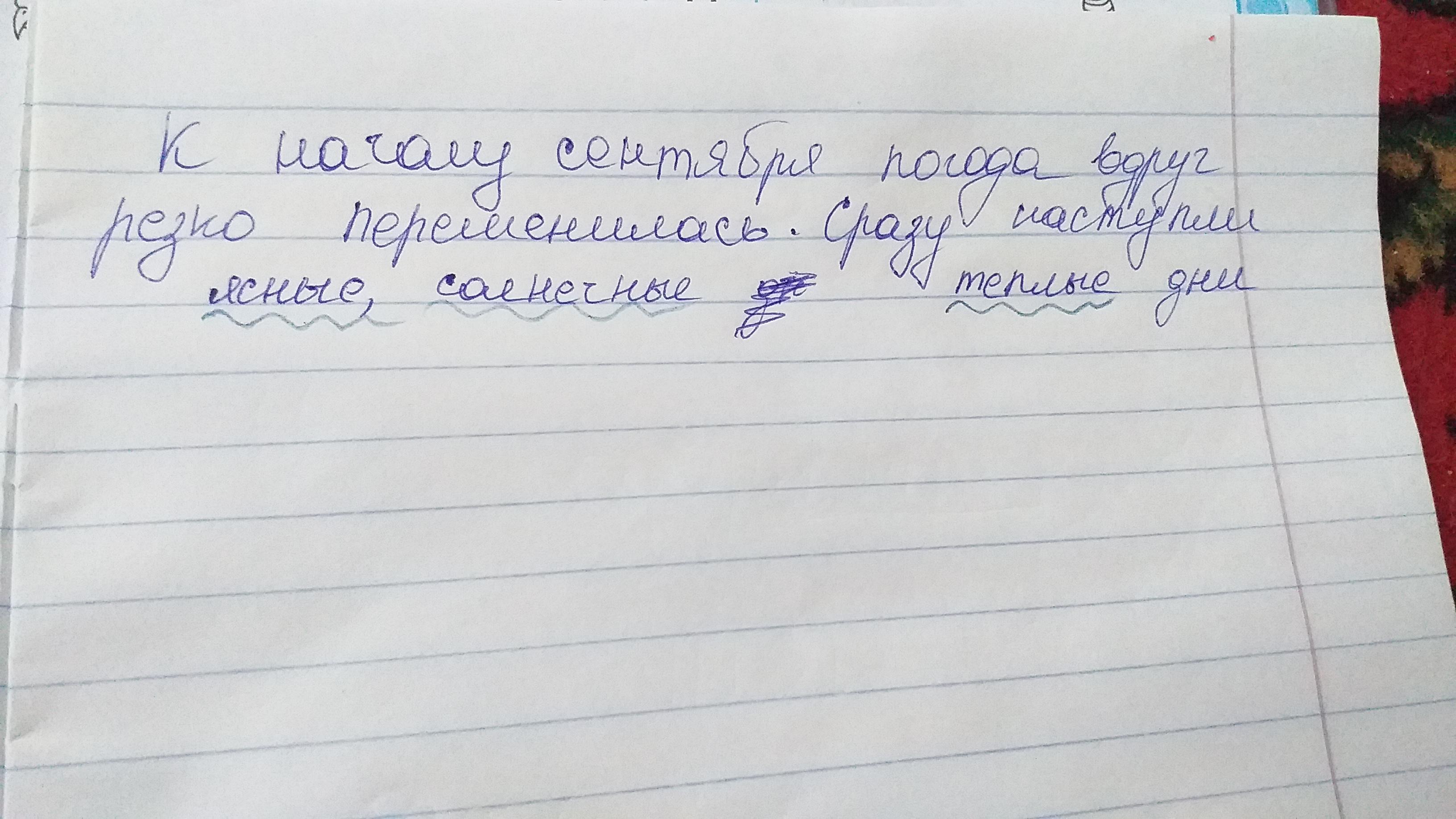 К началу сентября погода вдруг резко переменилась. Сразу наступили ясные, солнечные, тёплые дни