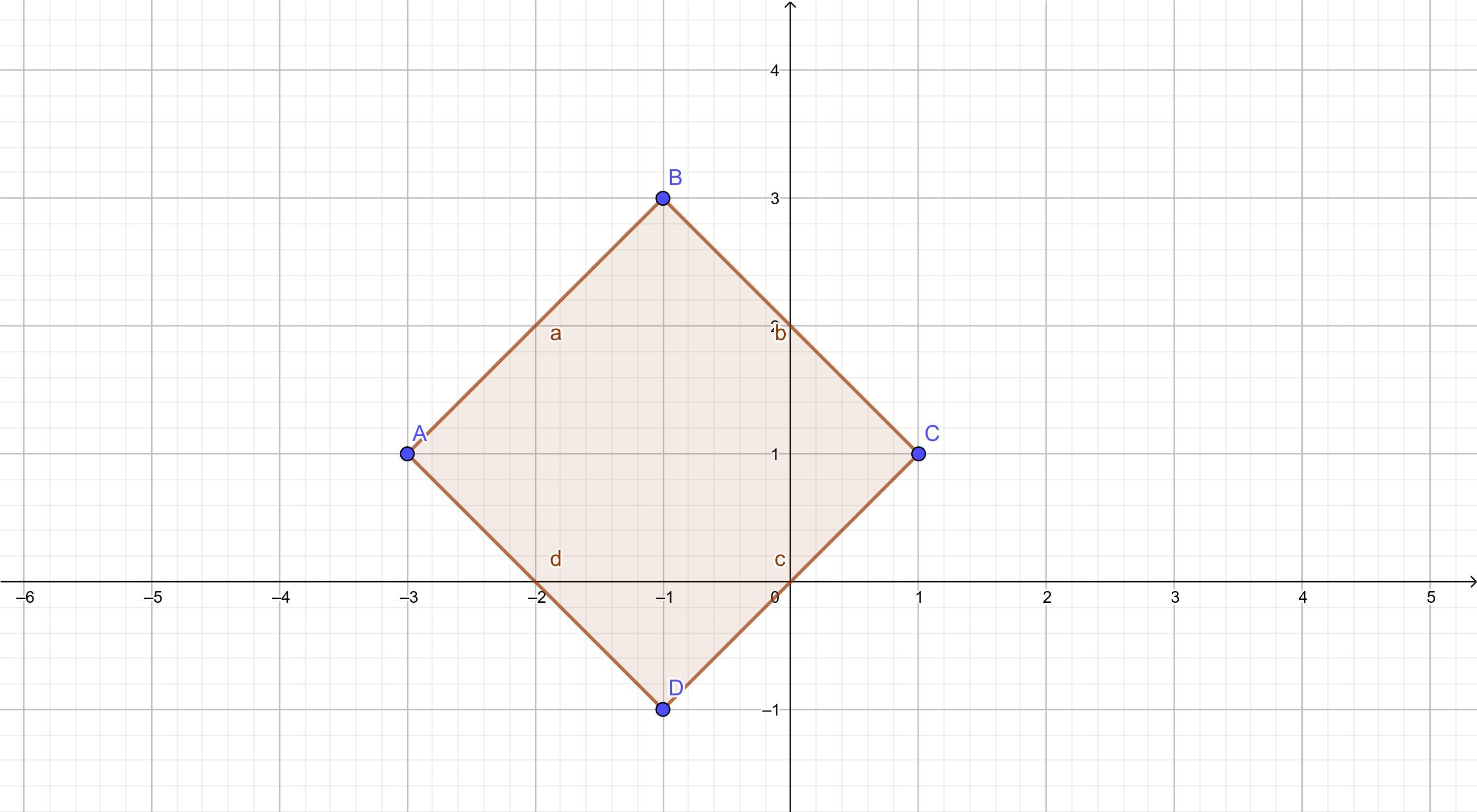 ABCD - квадрат, довжини його сторін дорівнюють одна одній, та довжини його діагоналей також дорівнюють одна одній.