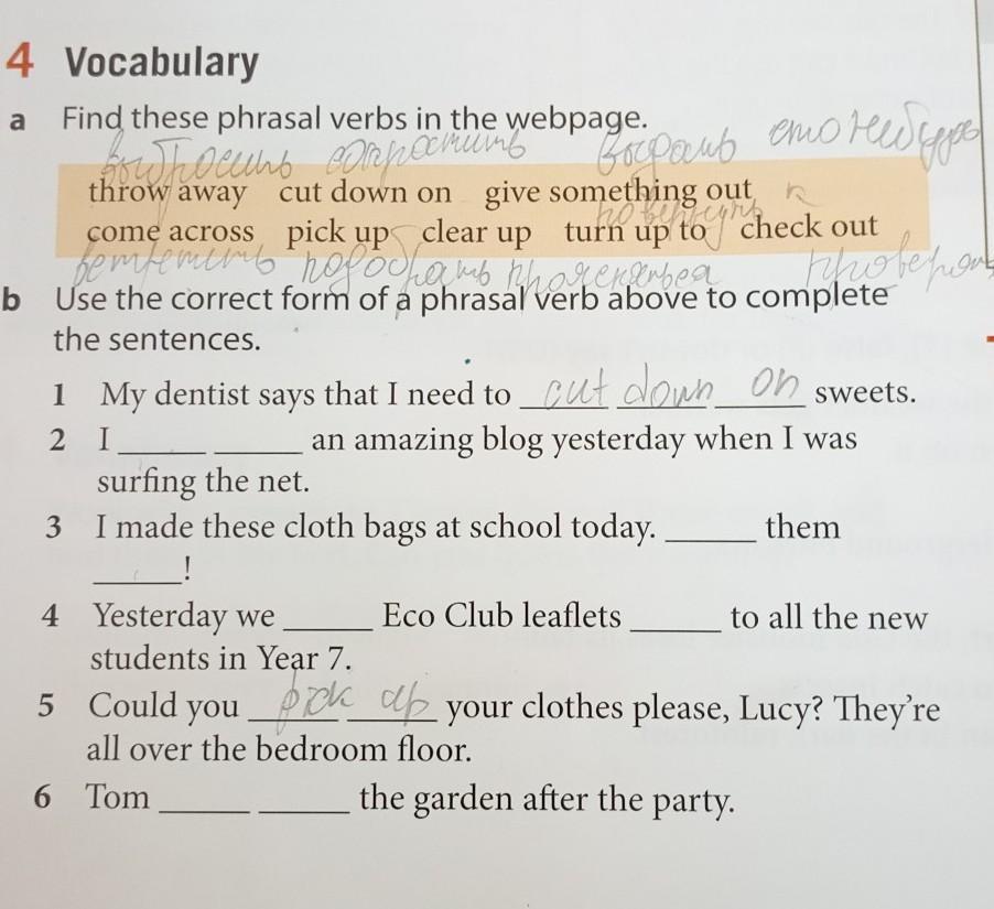 b Use the correct form of a phrasal verb above to complete the sentences.