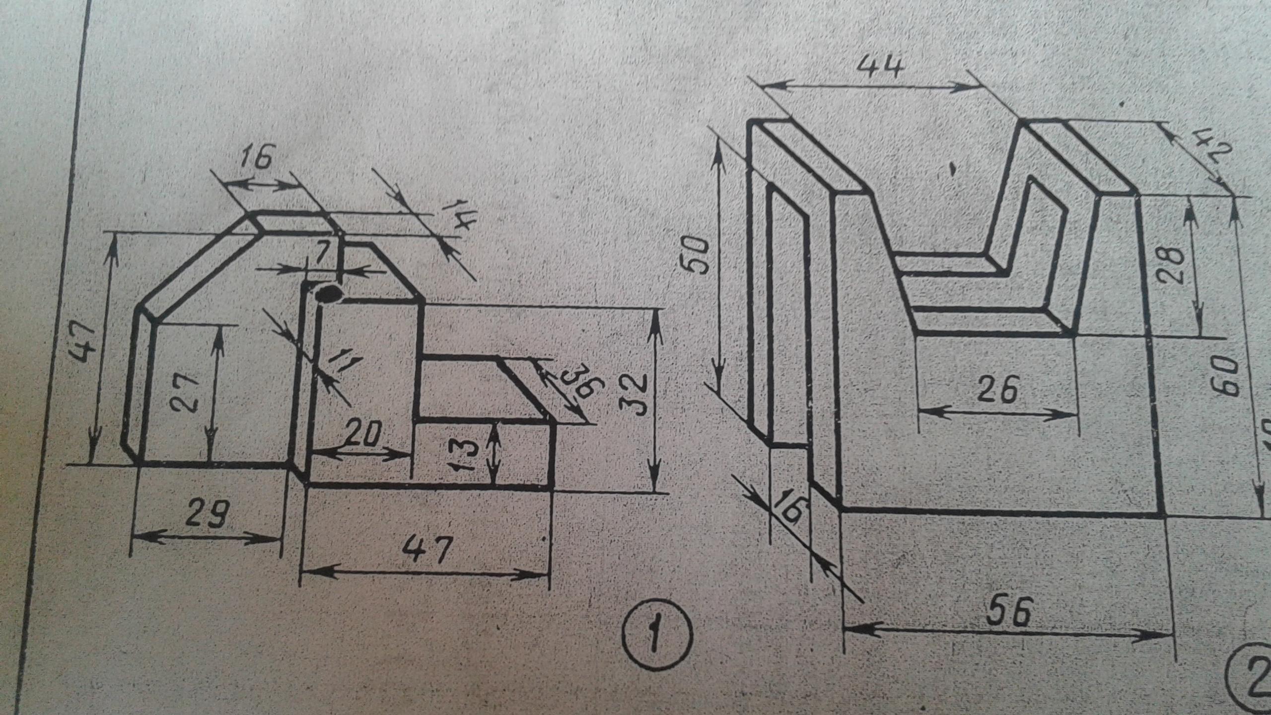 Срочно !!! Черчение ! Дам 50 б !!! Построить три проекции и нанести размеры . Выполнить 1 и 2 задания