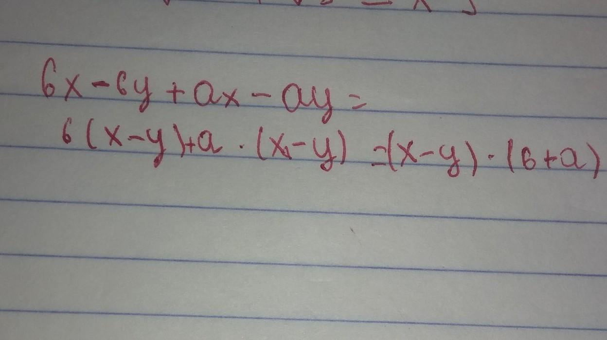 6х-6у+ах-ау= 6(x-y)+a(x-y) =