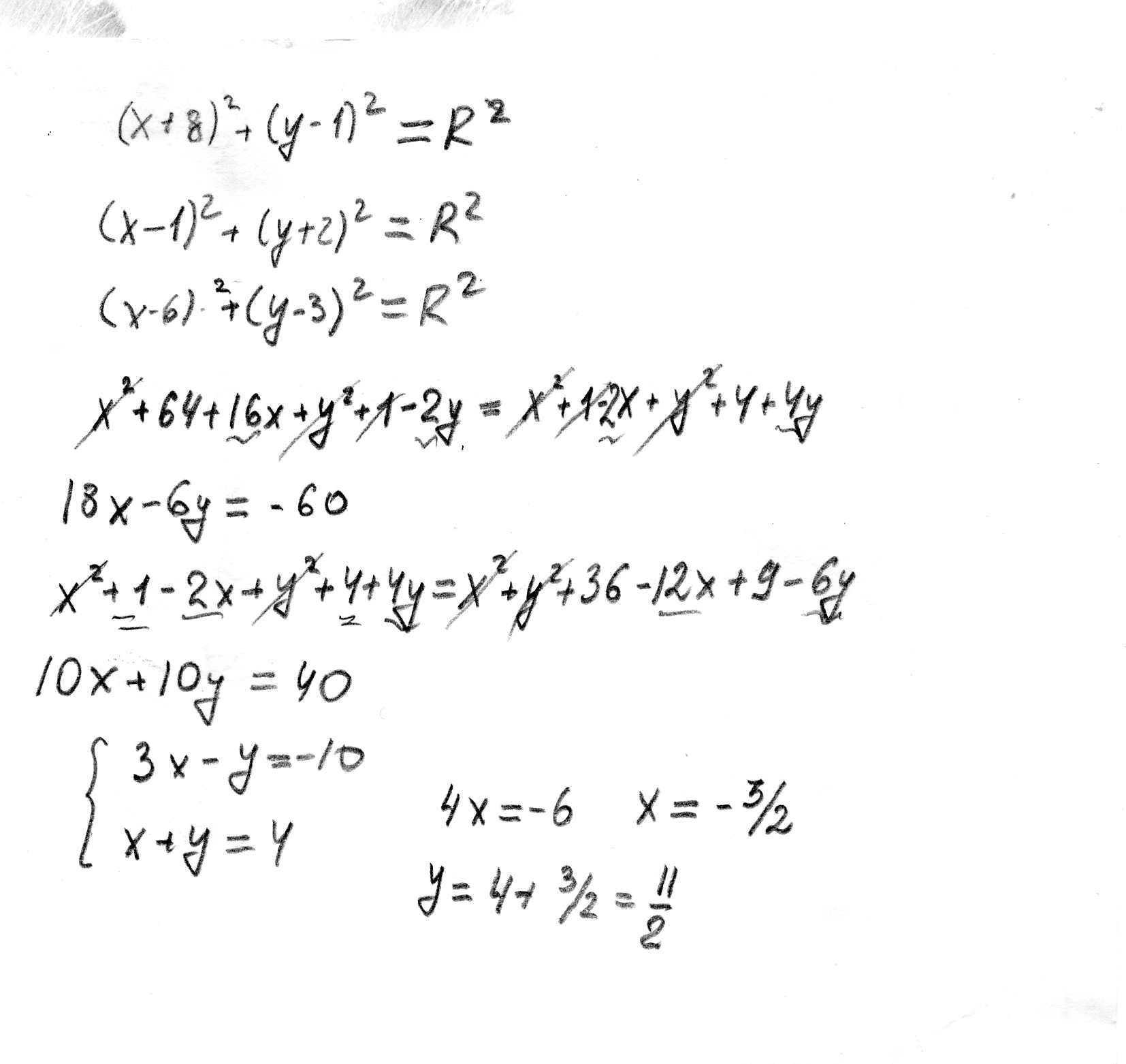 Вершинами треугольника служат точки A(-8; 1), B(1; -2), C(6; 3). Найти центр описанной около него окружности. Нужно подробное решение.