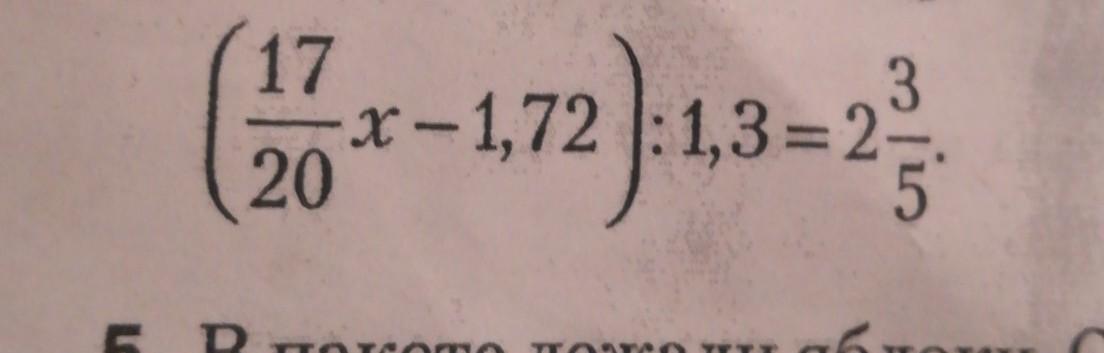 (17/20х-1,72)÷1,3=2 3/5