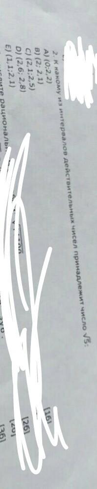 к какому из интервалов действительных чисел принадлежит число: корень из 5?