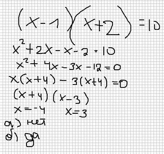 1. Является ли корнем уравнения (x-1)(x+2)=10