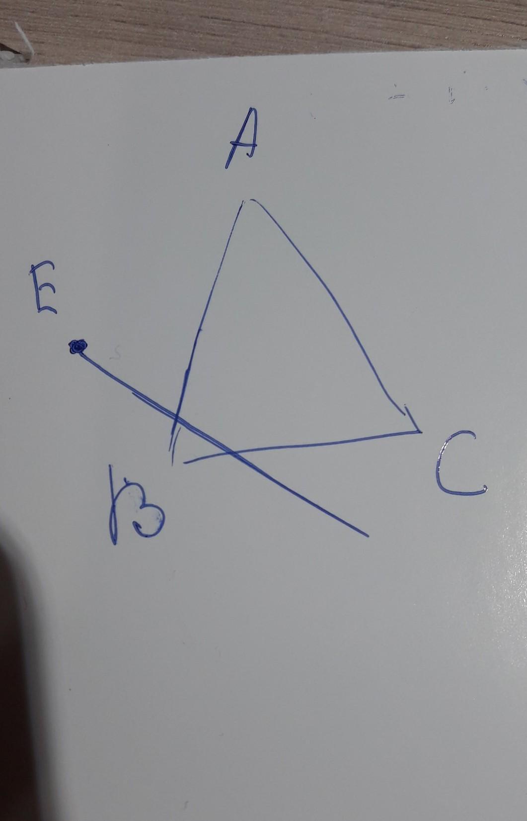 Начертите треугольник АВС. Отметьте точку Е, лежащую вне треугольника. С началом в точке Е проведите лучи, один из которых пересекает луч ВС, а другой не пересекает луч АС