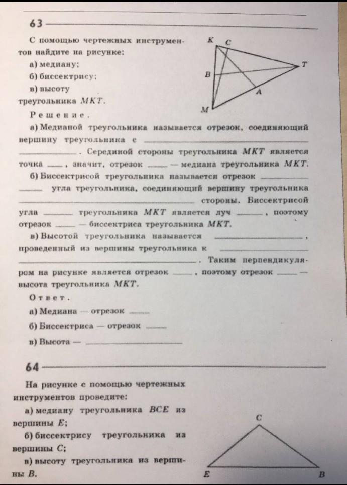 а ) ТВ - медиана ; с серединой противолежащей стороны ; б)КА-биссектриса ;