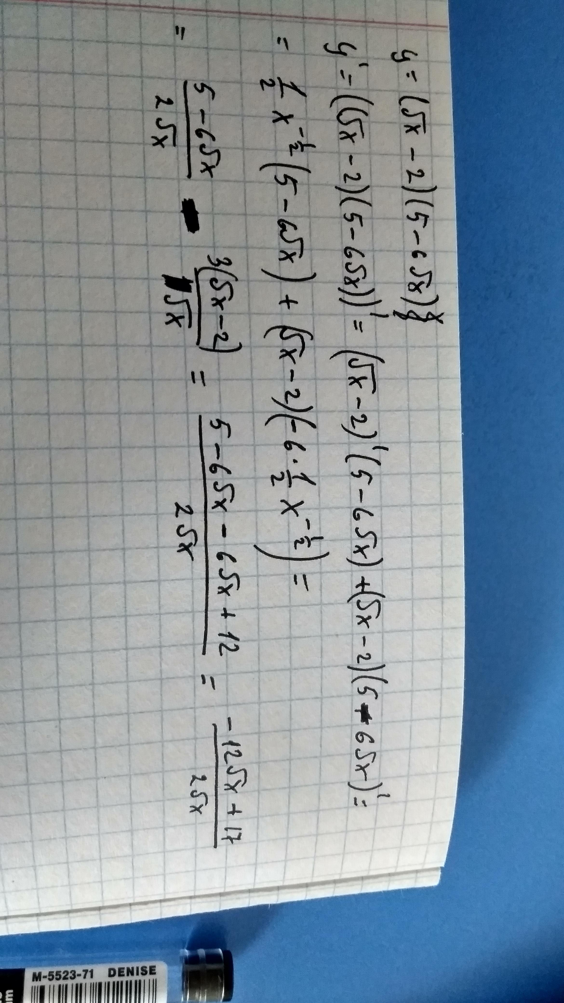 Найдите производную функции y=(x√−2)(5−6x√) .