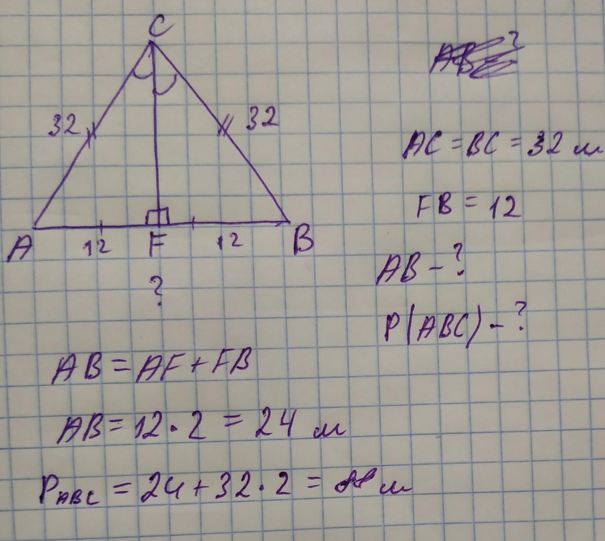Вычисли периметр треугольника ACB и сторону BA, если CF — медиана,