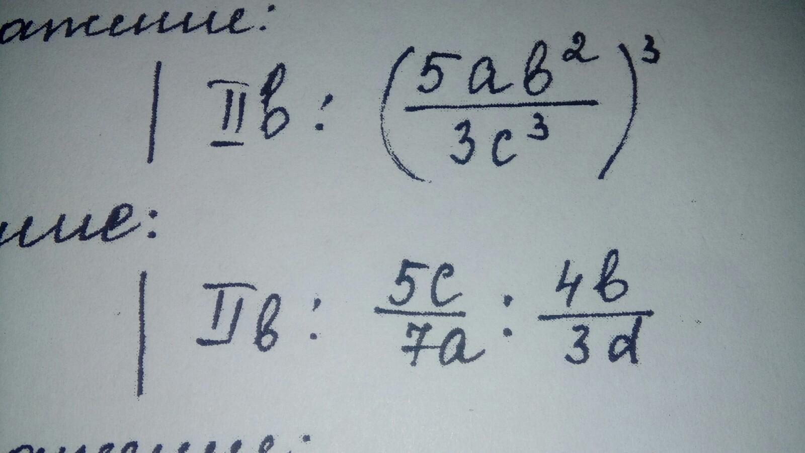 1 ) (5ab^2/3c^3)^3 = 125a^3b^6/27c^9