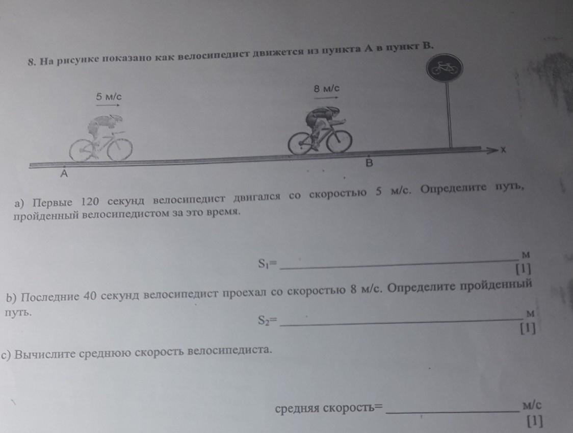 первые 120 секунд велосепедист двигался со скоростью 5м/с.Определите путь, пройденный велосепедистом за это время