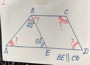 Т.к. BE = CD и BC ll AD (трапеция), то BECD - ромб - ∠EBC = ∠СDE = 50°