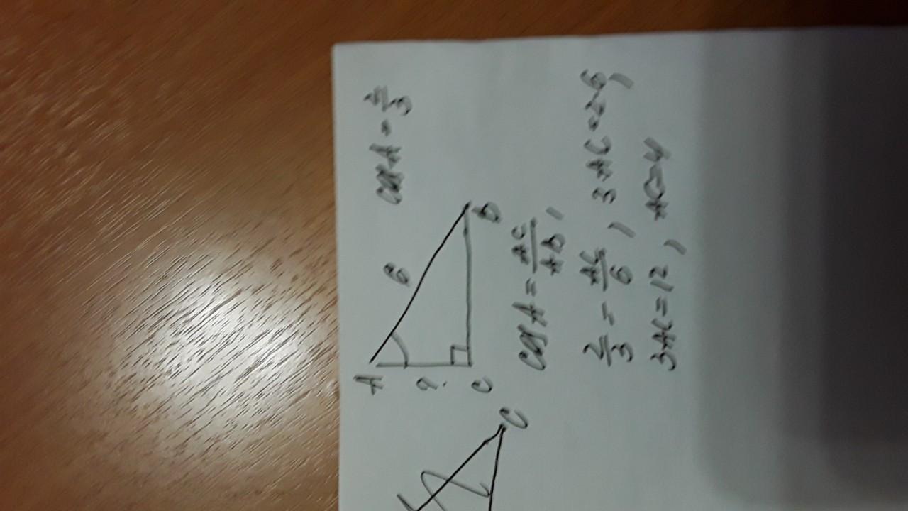 В треугольнике Abc, угол C равен 90 градусов. AB = 6 см. Cos A = 2/3. Найдите длину катета AC.
