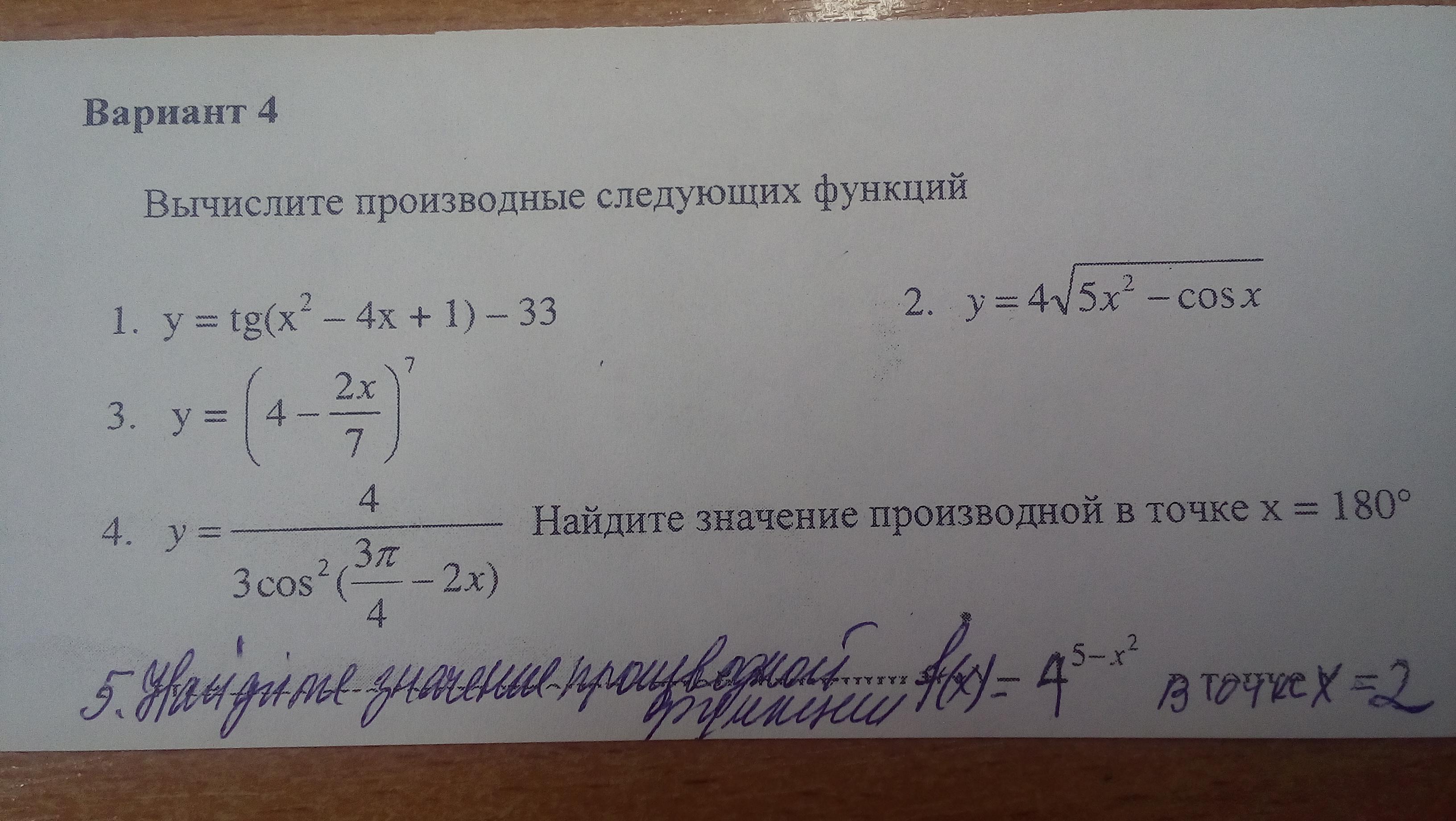 Вычислите производные следующих функций
