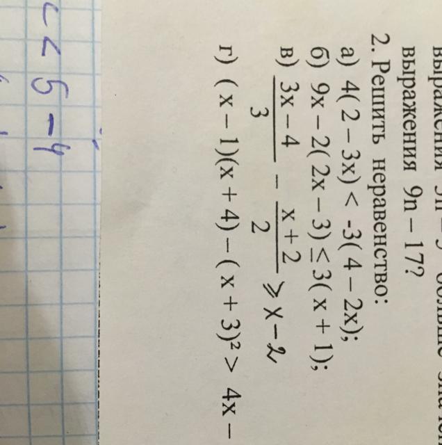 г) (х в квадрате ) +4х-х -4 -((х+3)×(х+3))>4х-6