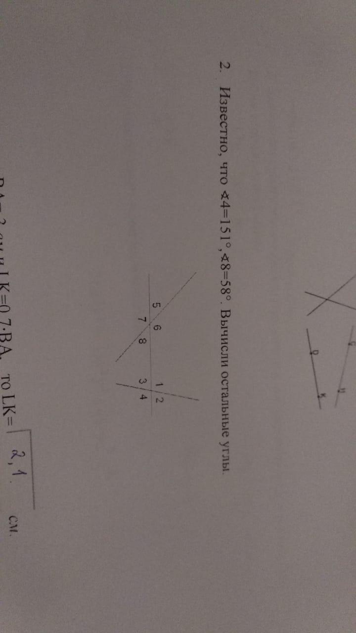 Дальше сможем найти углы 7 и 6, которые также вертикальны: