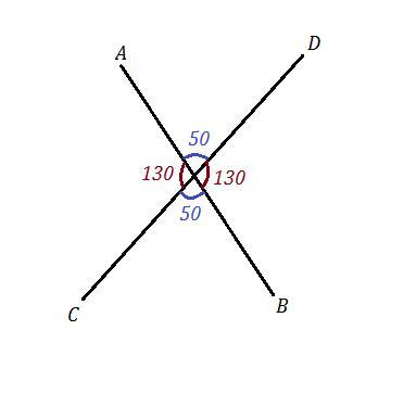 Найдите все углы, образованные при пересечении прямых АВ и СД в точке О . Если сумма трех углов 310°