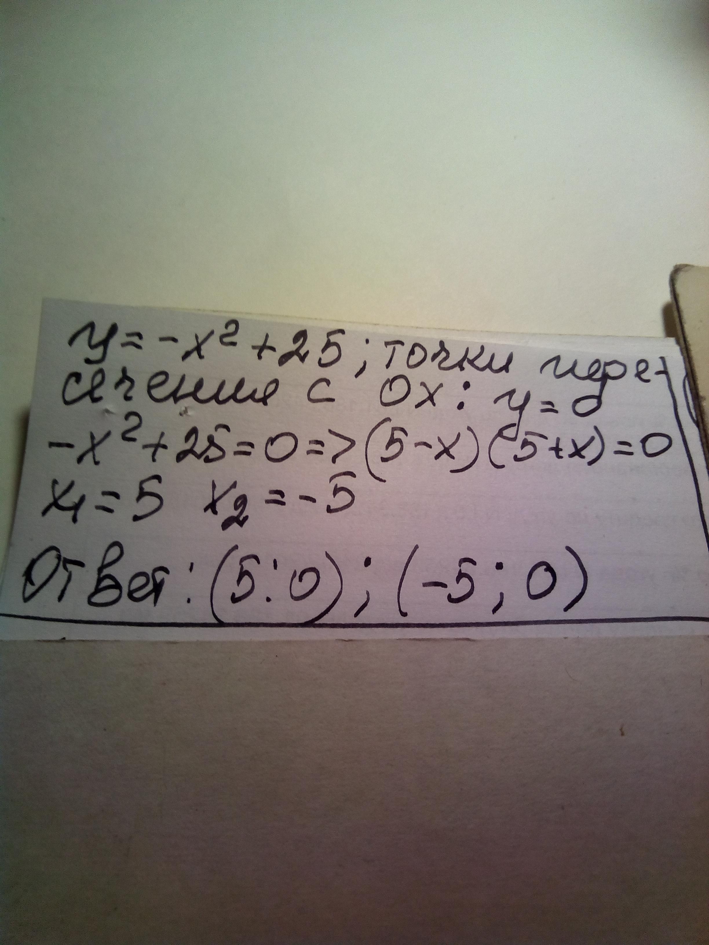 Вычислите абсциссы точек пересечения графика функции y = -x^2 + 25 с осью x, напишите решение и ответ
