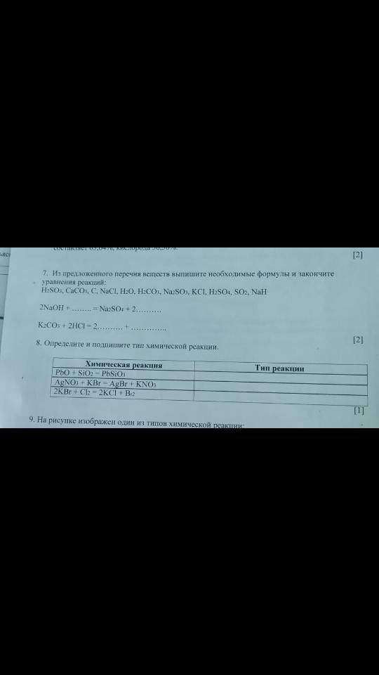 7. 2NaOH+H2SO4=Na2SO4+2H2O