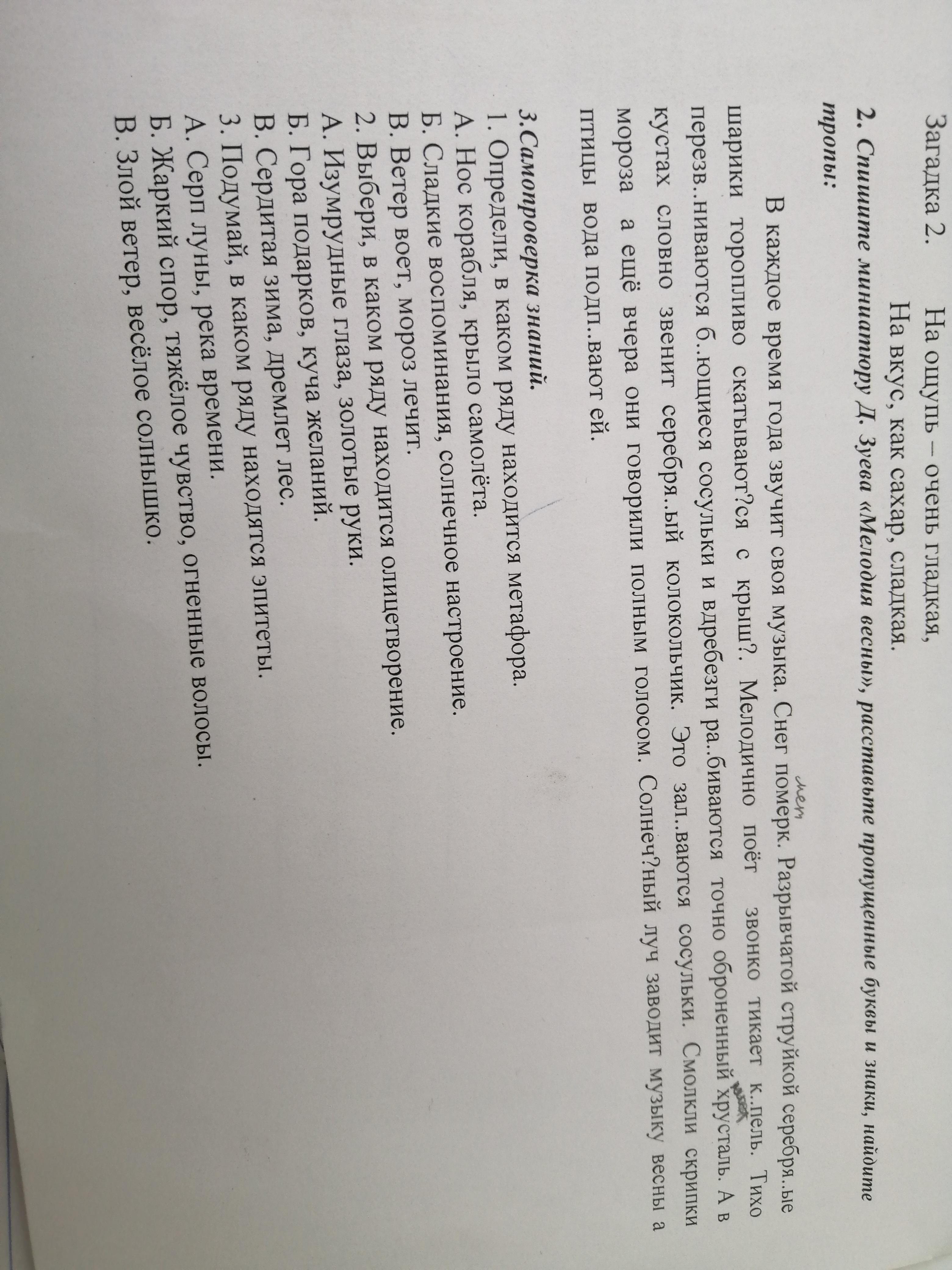 Помогите пожалуйста. Нужно найти все олицетворения, сравнения, метафоры и эпитеты. в номере 2