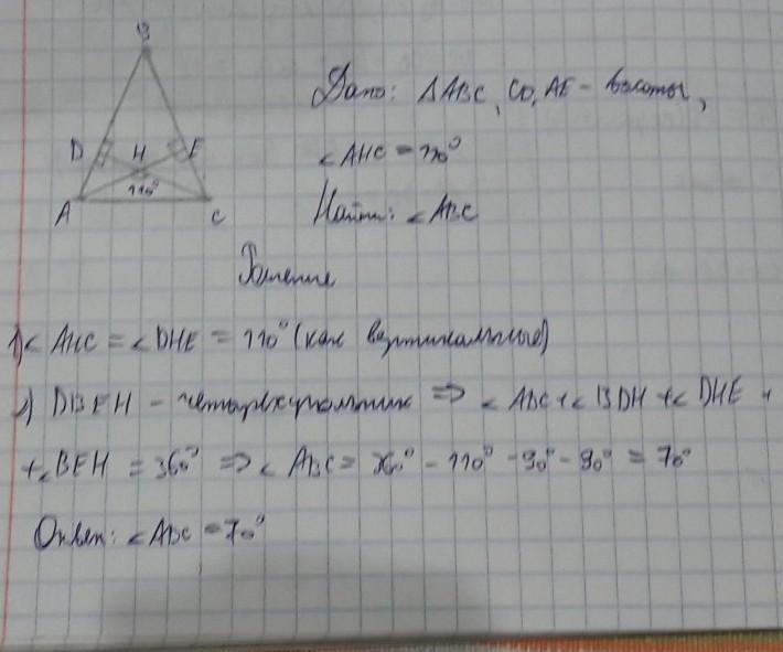 точке Н. Известно, что угол АНС равен 110°. Найдите