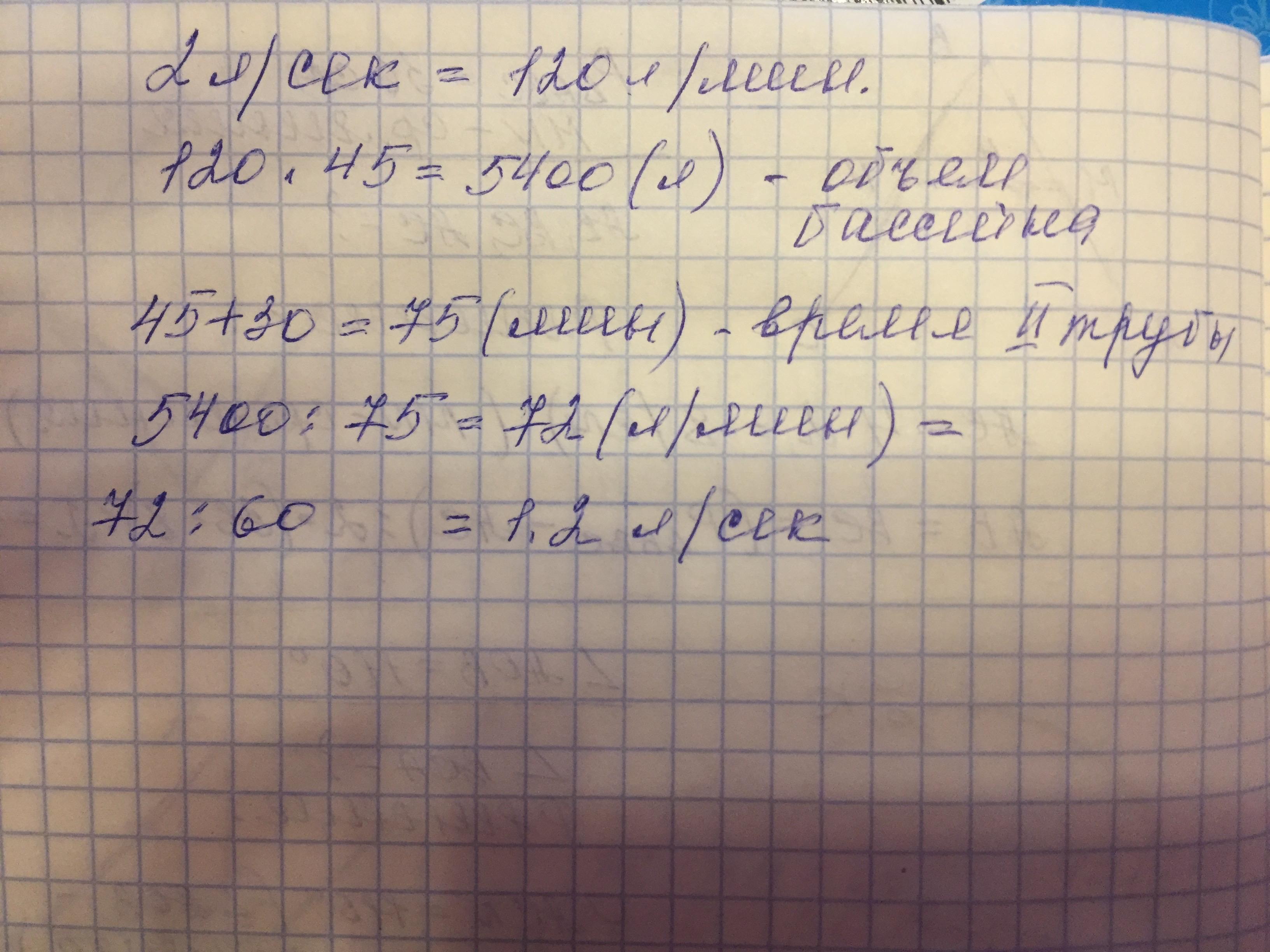 (45*60*2)/((45+30)*60)=1,2 л / сек
