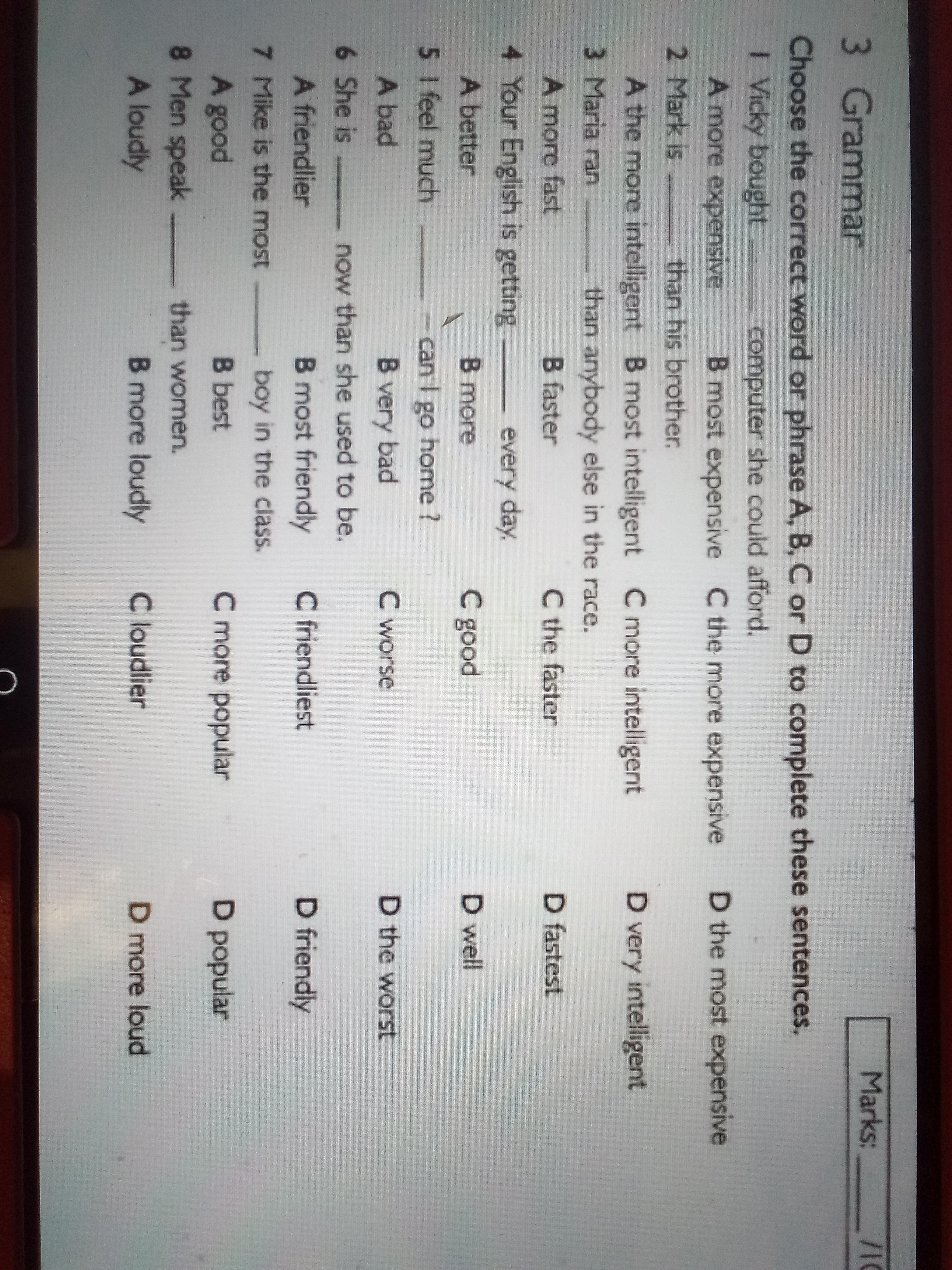 Choose the correct word or phrase A,B,C or D to complete these sentences.1-10 задания