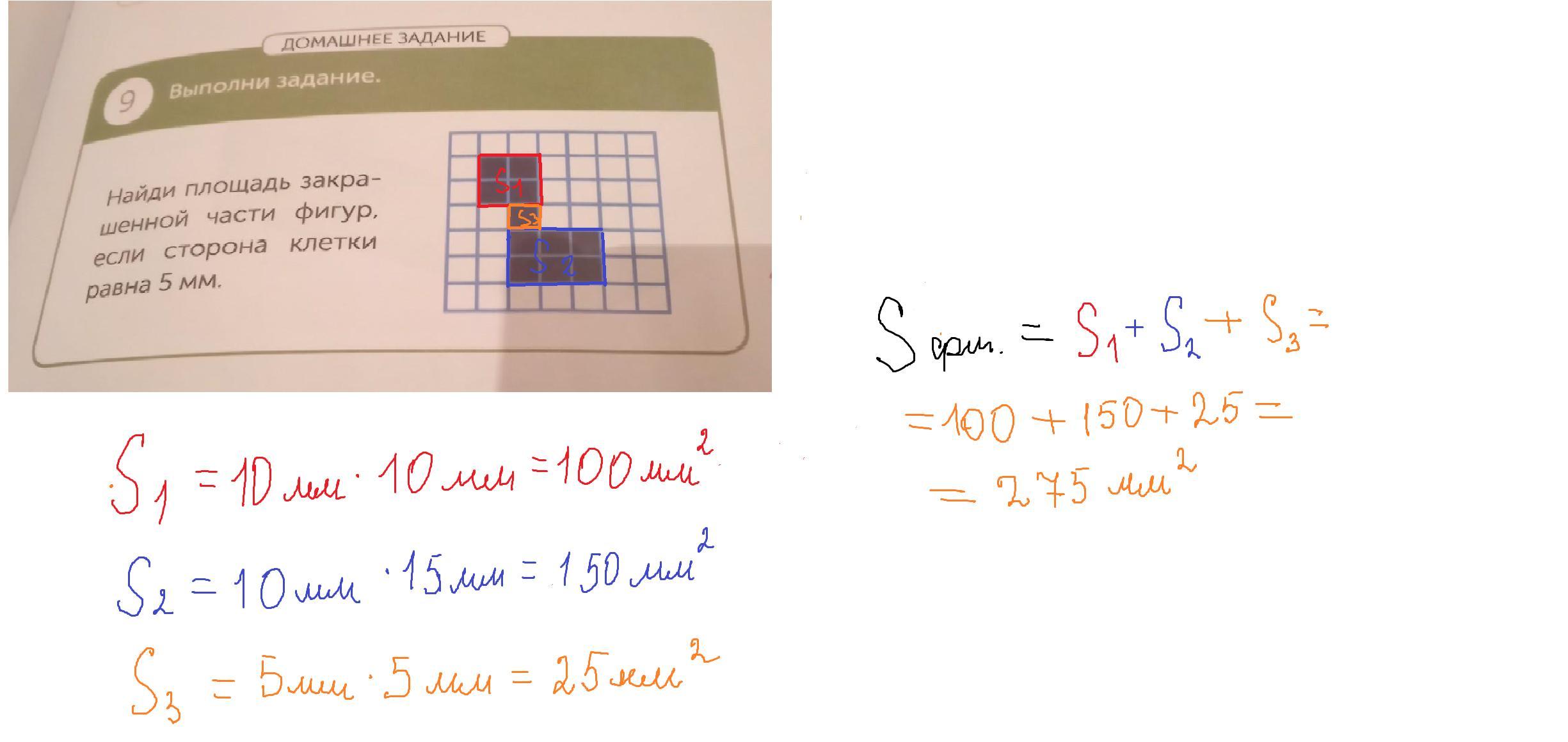 275мм²-площадь закрашенной части
