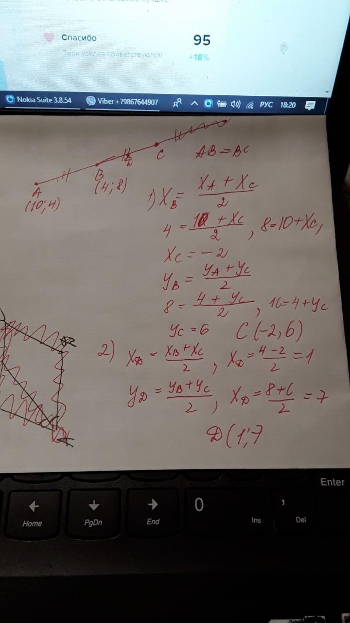 Найди координаты точек C и D , если известно, что точка B — середина отрезка AC , а точка D — середина отрезка BC .