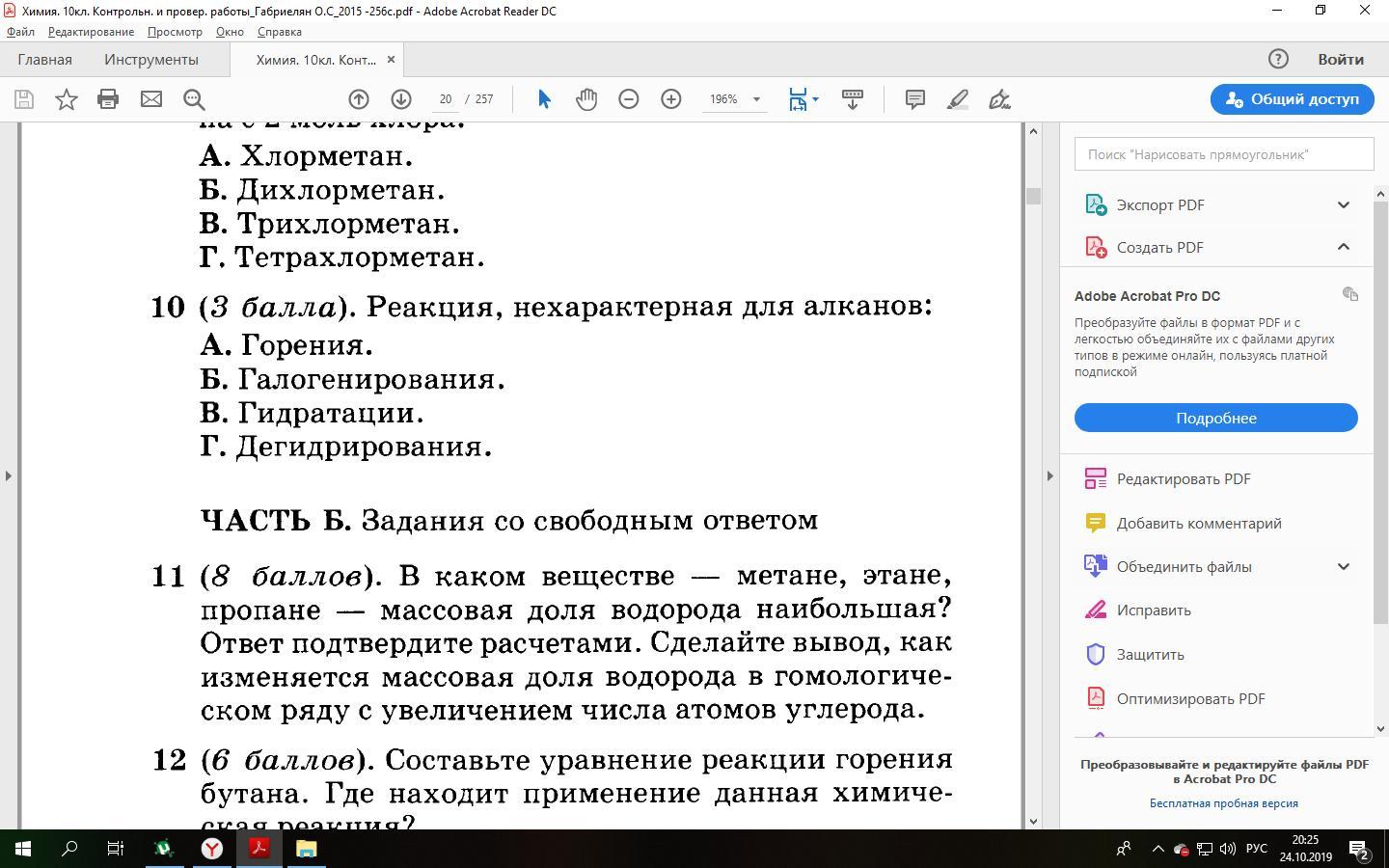 Ответ: Для алканов, не характерна реакция гидратации. То есть, ответ В)
