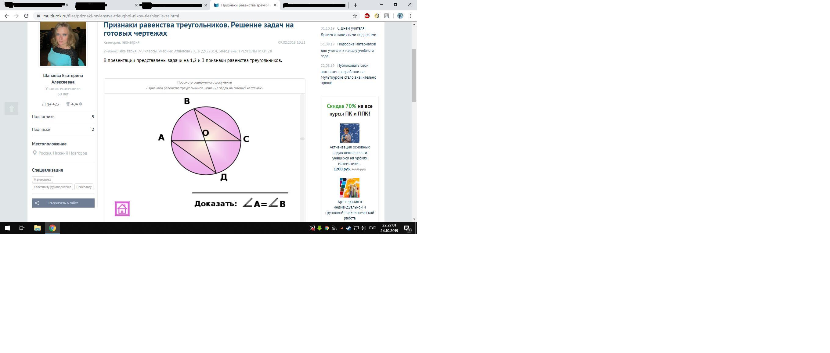 Следовательно, треугольник АОД равен треугольнику ВОС по двум сторонам и одному углу.