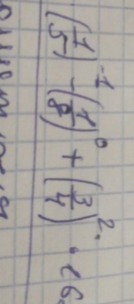 (1/5)⁻¹-(1/8)⁰+(3/4)²×16 = 5-1+9/16×16 = 13
