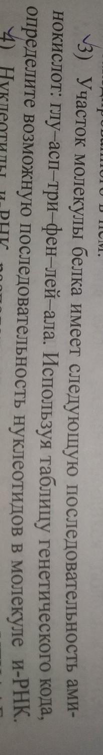 Это одна из возможных последовательностей. Почему одна из? Так как одну и ту же аминокислоту могут кодировать несколько триплетов. Например, аминокислота аланин (ала) кодируется 4 разными триплетами. В приведенной последовательности мы использовали триплет ГЦУ, и если его заменить на ГЦГ, последовательность изменится, но все равно будет соответствовать условию, так как ГЦУ и ГЦГ кодируют одну и ту же аминокислоту.
