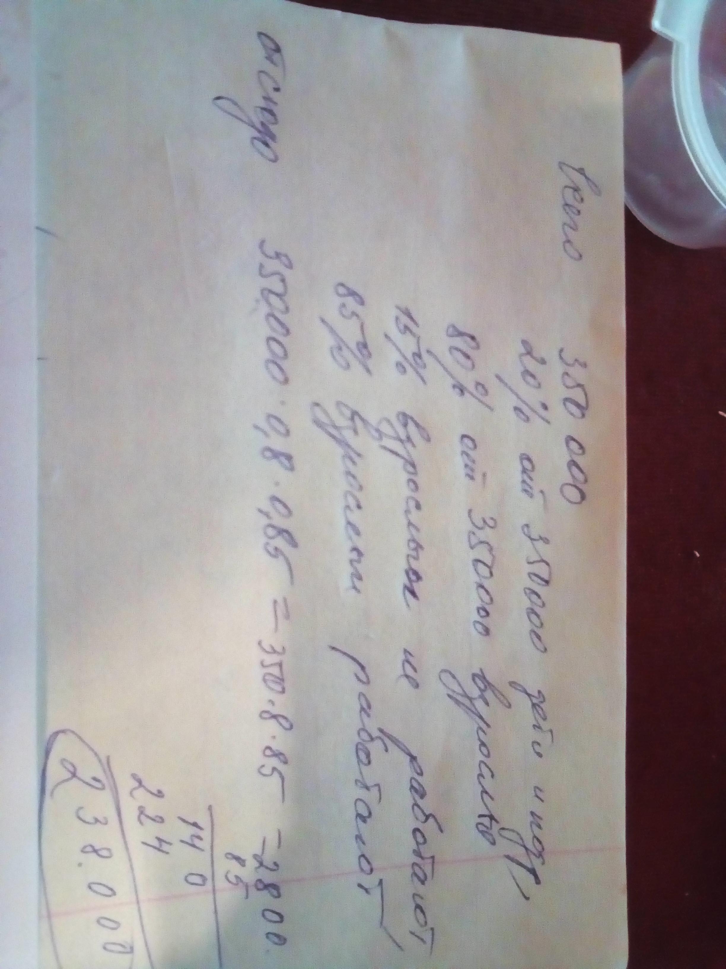 В городе N живёт 350.000 жителей среди них 20% детей и подростков. среди взрослых жителей 15% не работает (пенсионеры ,студенты, домохозяйки и т.п.). сколько взрослых жителей работает?