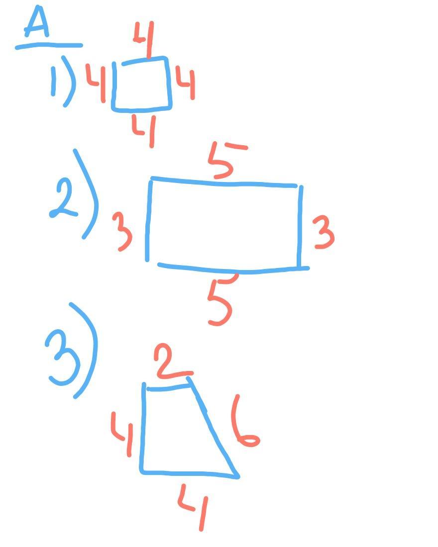 А) Начертите квадрст, прямоугольник и произвольный четерехугольник с периметром 16 см. Б) Начертите два различных прямоугольника периметры которых по 14 см.