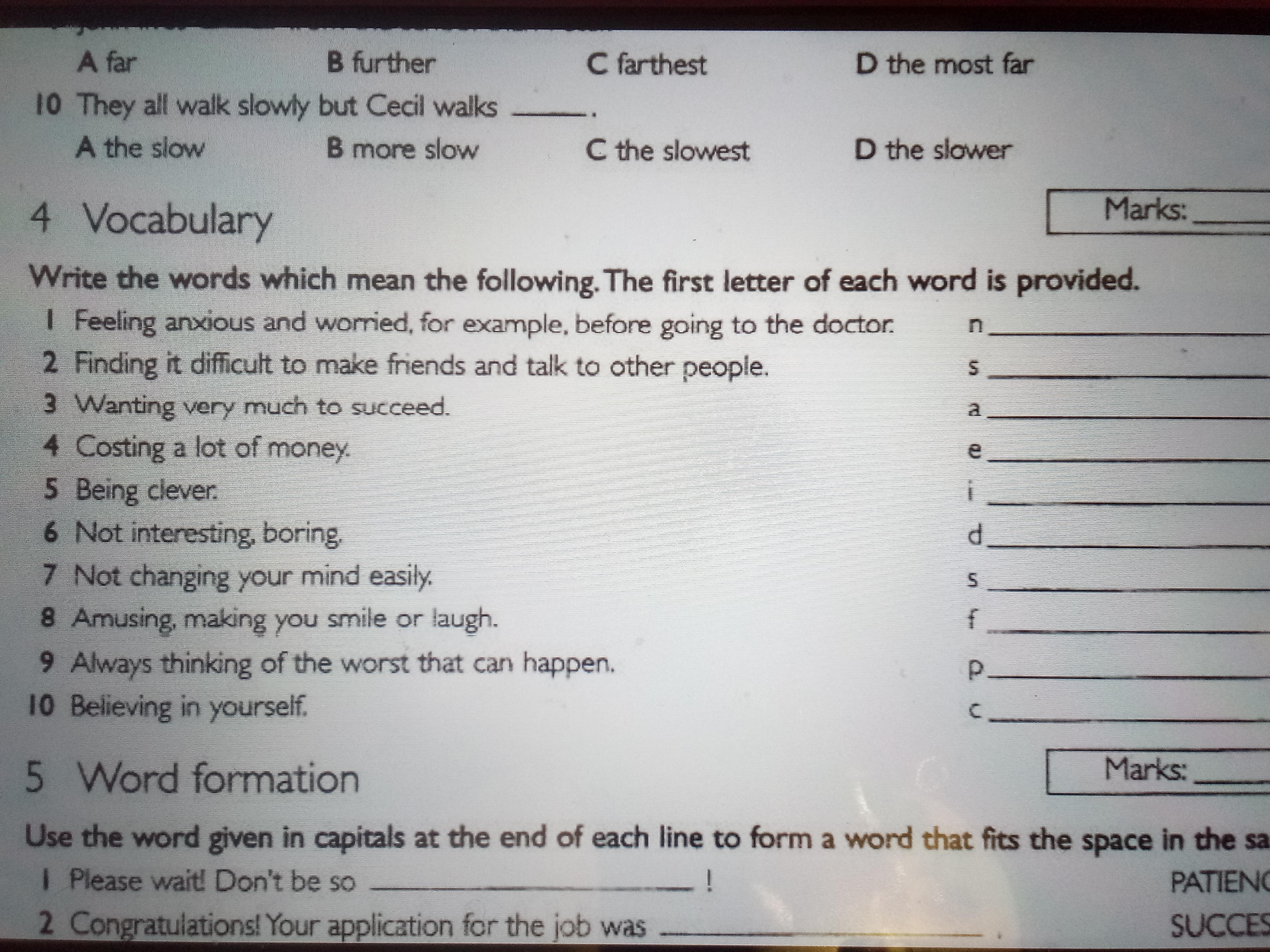 Write the words which mean the following.The first letter of each word is provided.1-10