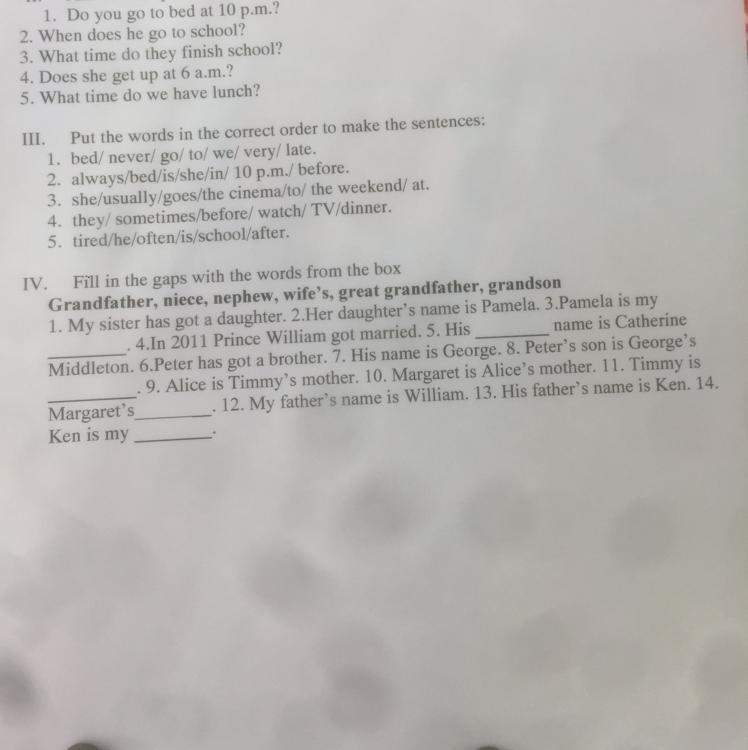 3. niece 5. wife's 8. nephew 11. grandson 14. grandfather