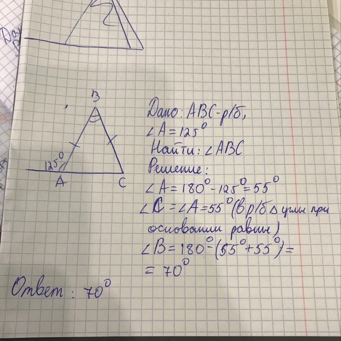 в равнобедренном треугольнике ABC с основанием AC вершины угол при вершине А равен 125 градусов Найдите величину угла ABC