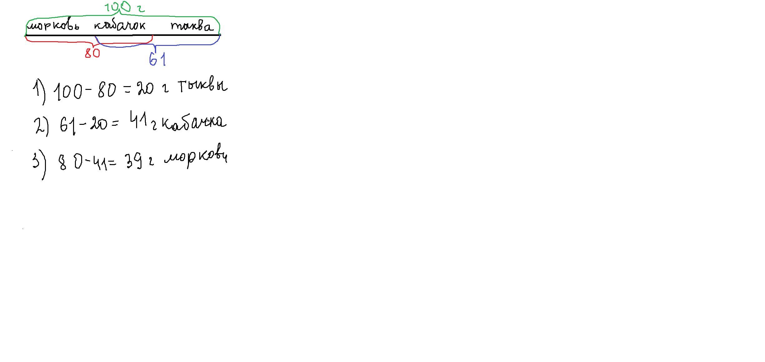 кабачок — 80 г, кабачок и тыква — 61 г. Сколько граммов овощей каждого
