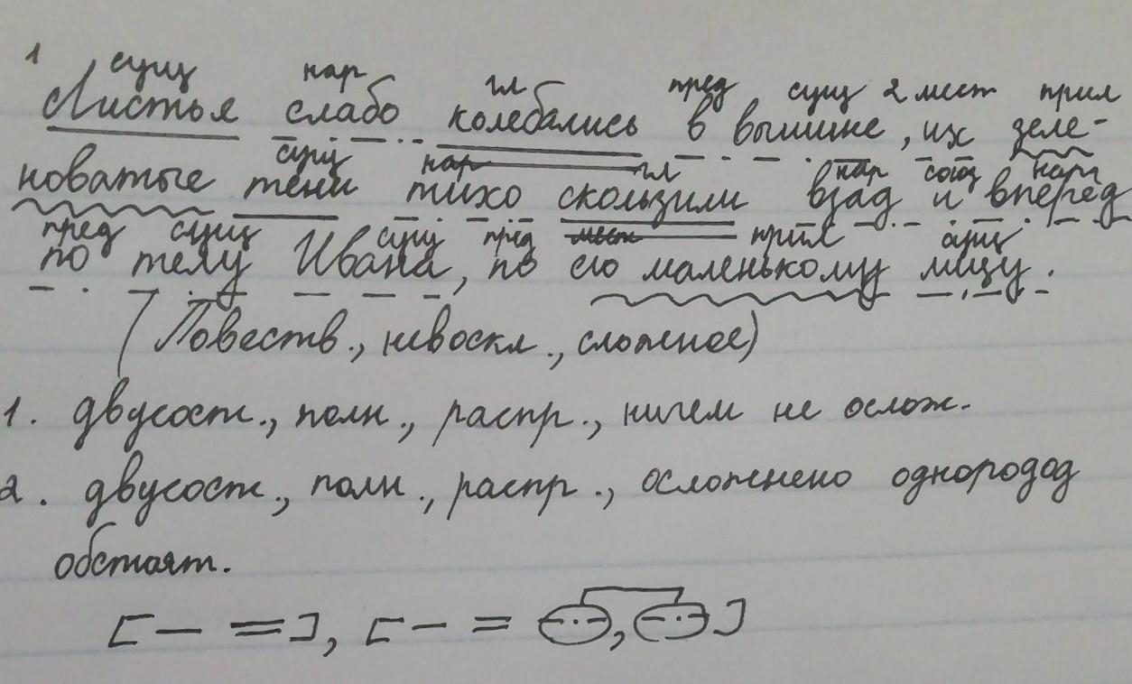 Синтаксический разбор предложения «Листья слабо колебались в вышинеих зеленоватые тени тихо скользили взад и вперёд по телу Ивана по его маленькому лицу.» и вставить знаки припинанния ! Помогите срочно !!!))))