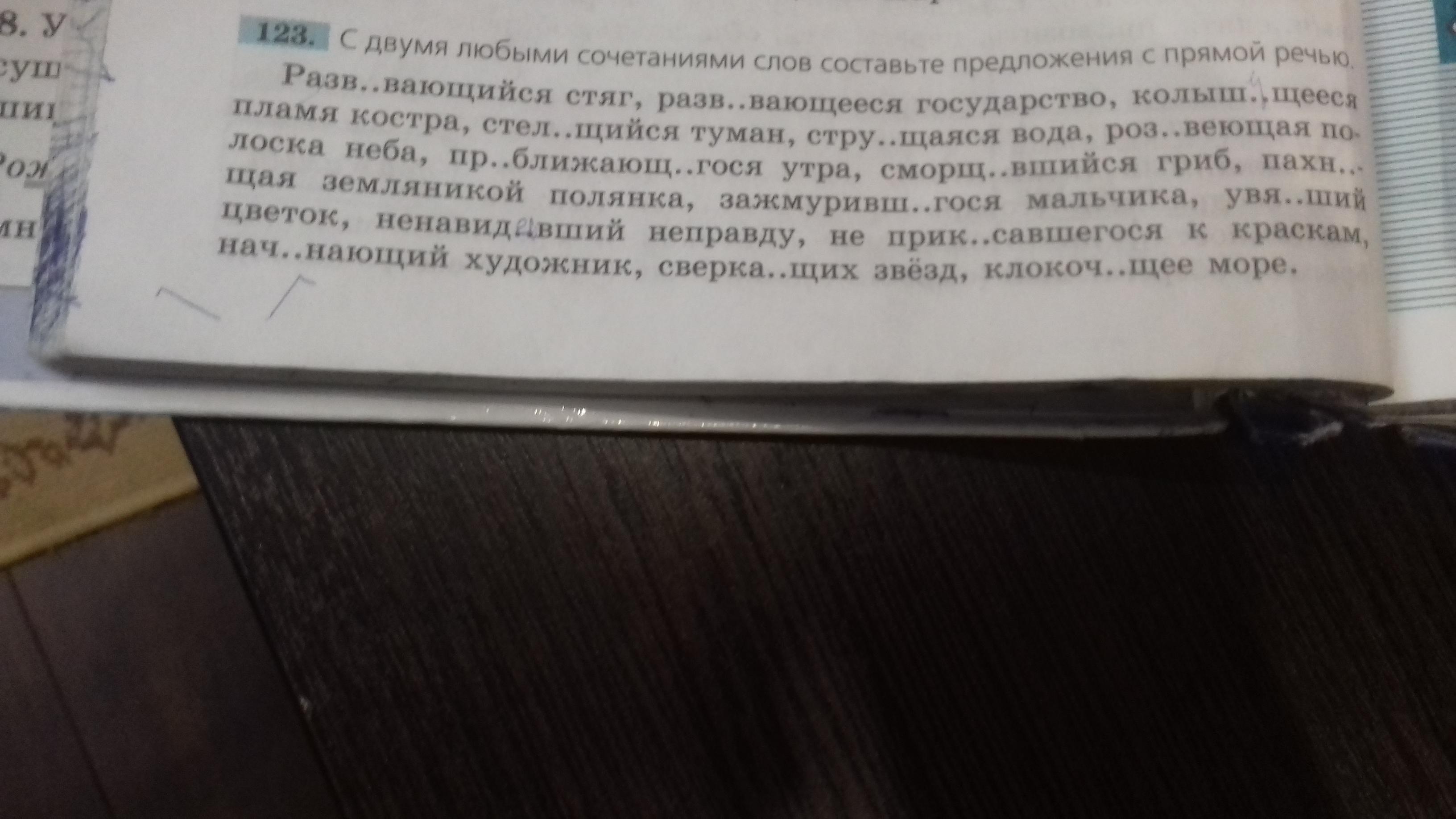 С двумя любыми сочетаниями слов составьте предложения с прямой речью