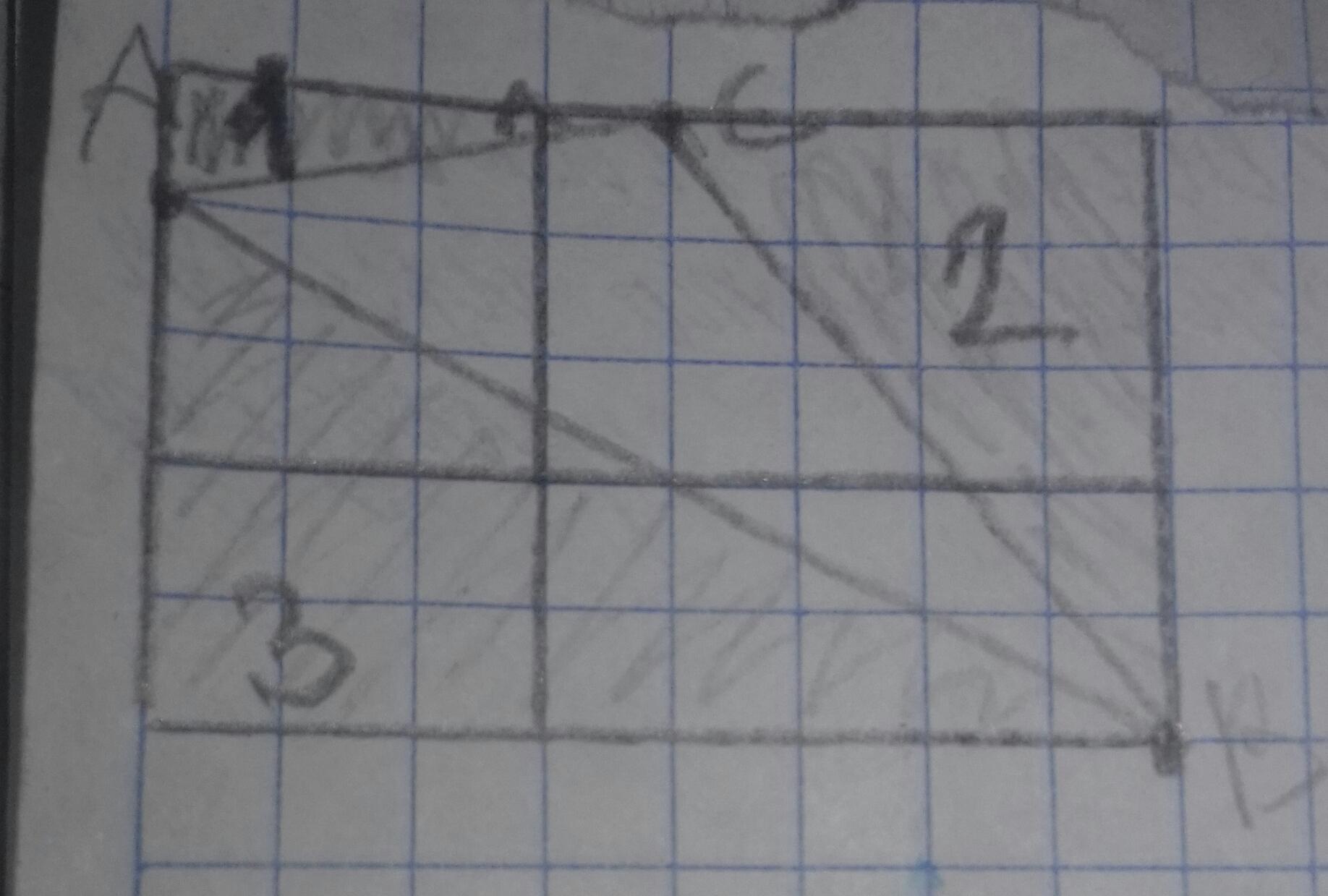 площадь исходного Δ = площадь прямоугольника - Δ1 - Δ2 - Δ3
