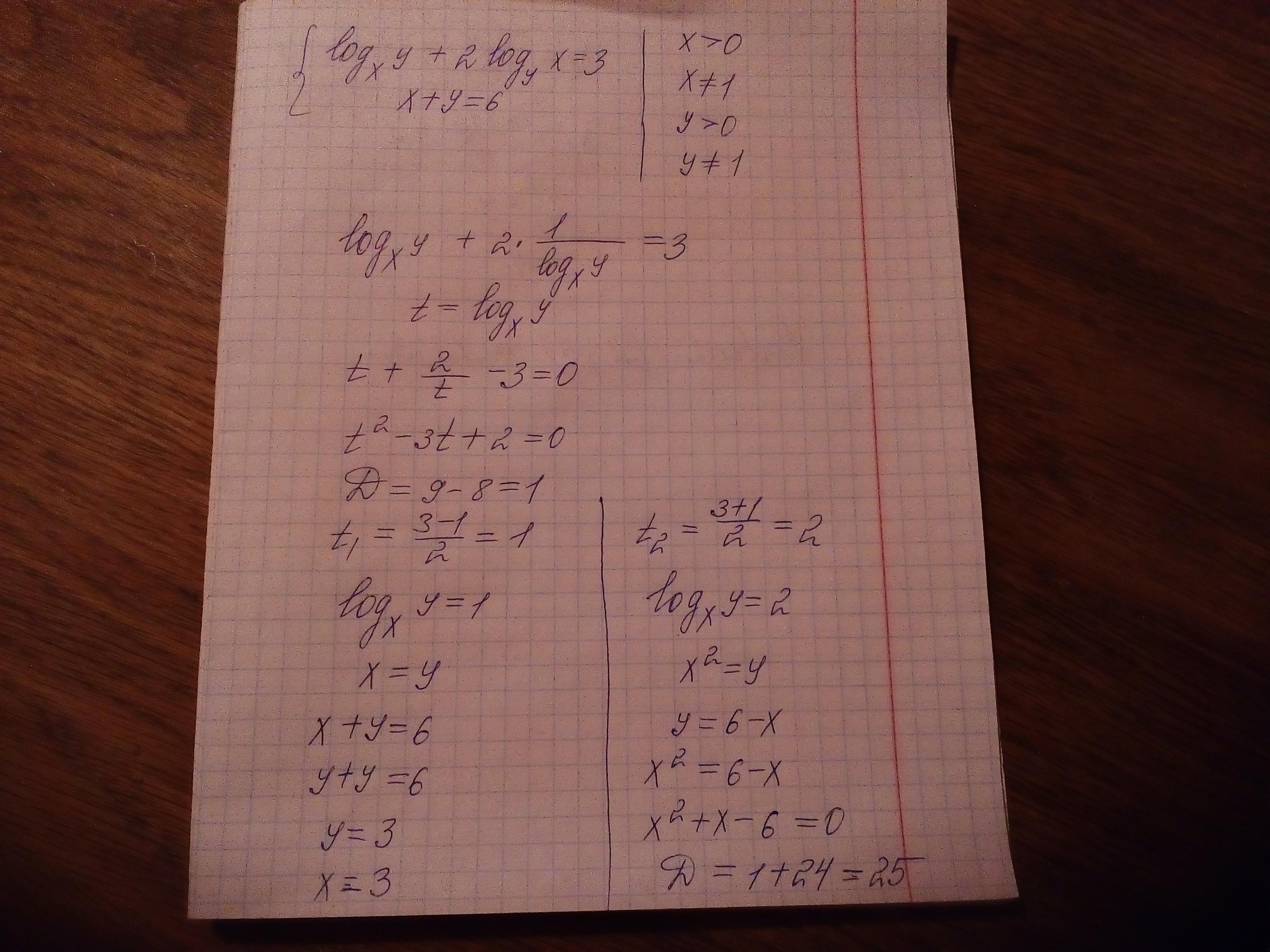 х*х+х=6 (х+0,5)^2=2,5 ^2 x1=-3 x2=2 по одз годится только х=2. у=4