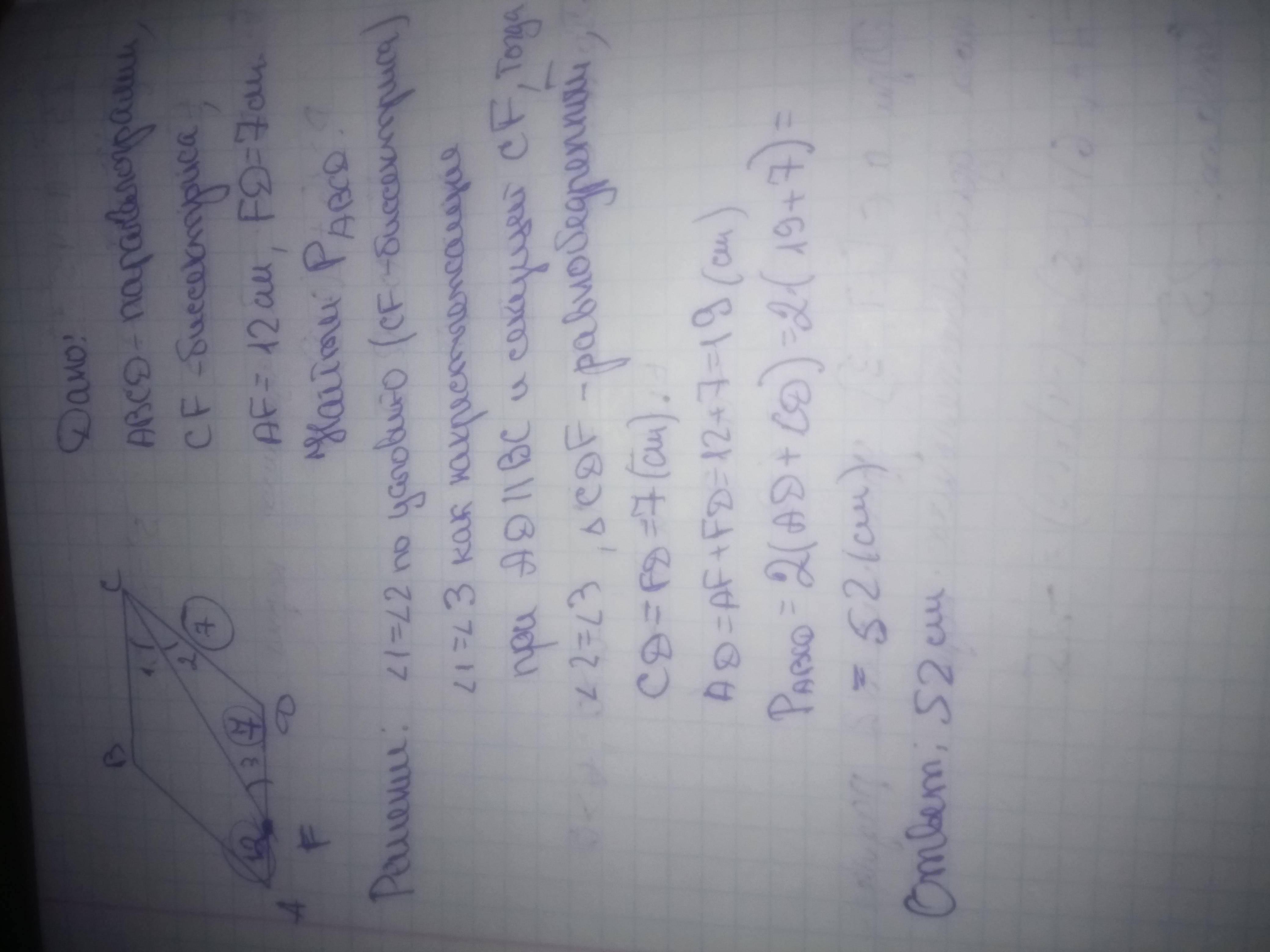 Ответ 52, это так. Но в условии написано "параллелрграмм", поэтому ход решения неверный.