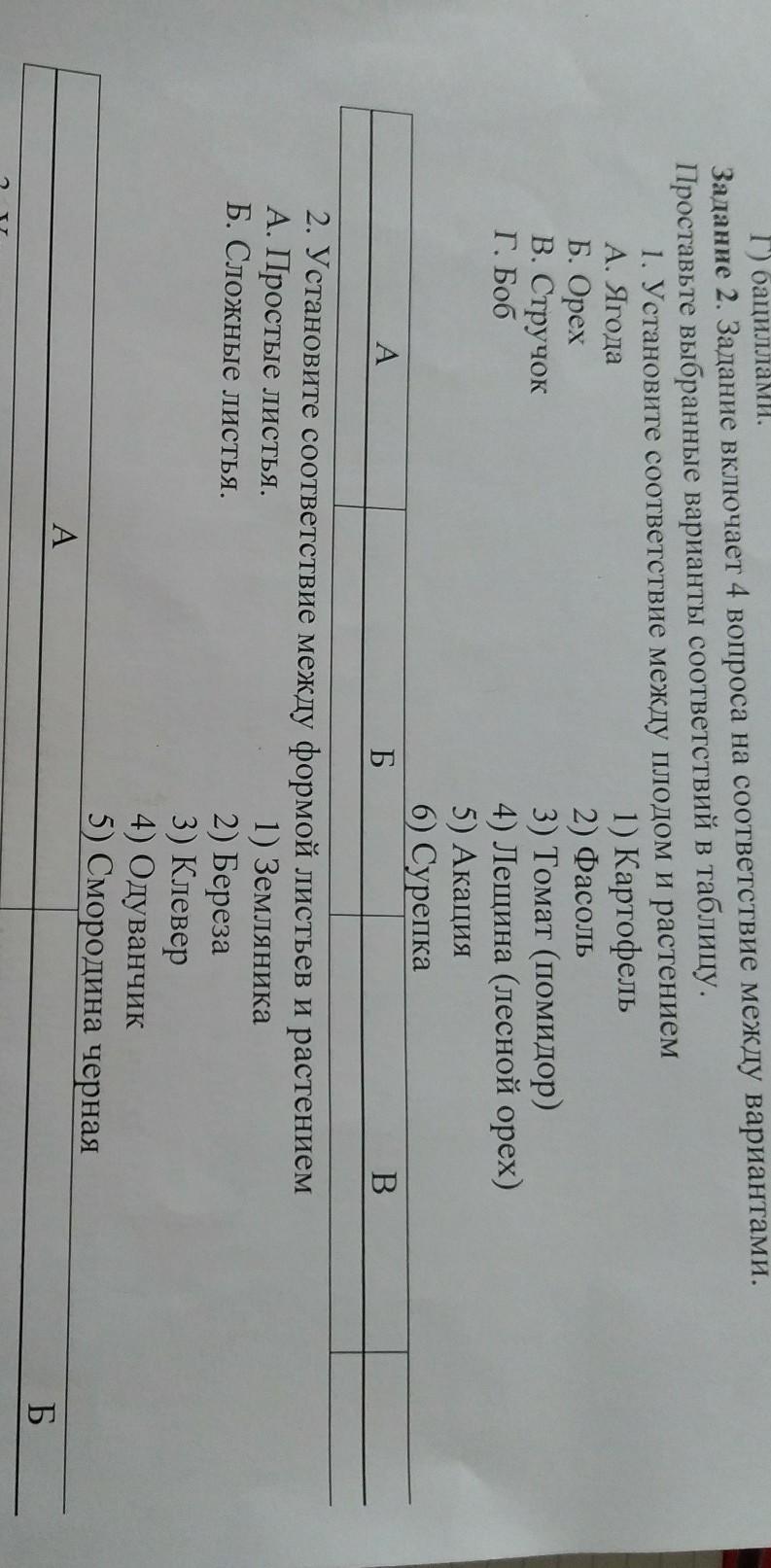 Г. Боб 2) Фасоль 5) Акация