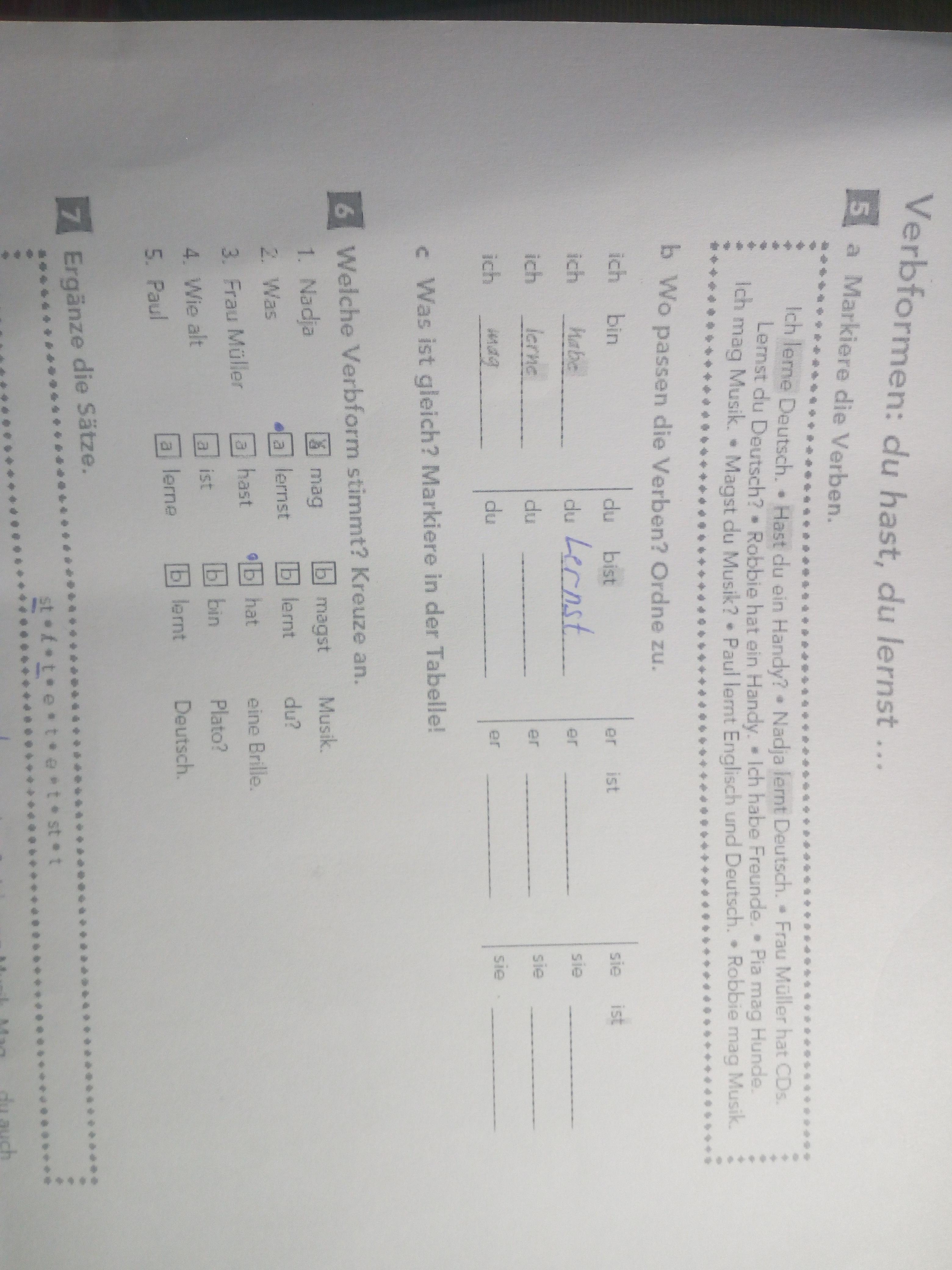 lerne, Hast, lernt, hat, Lernst, hat, habew, mag, mag, Magst, lernt, mag